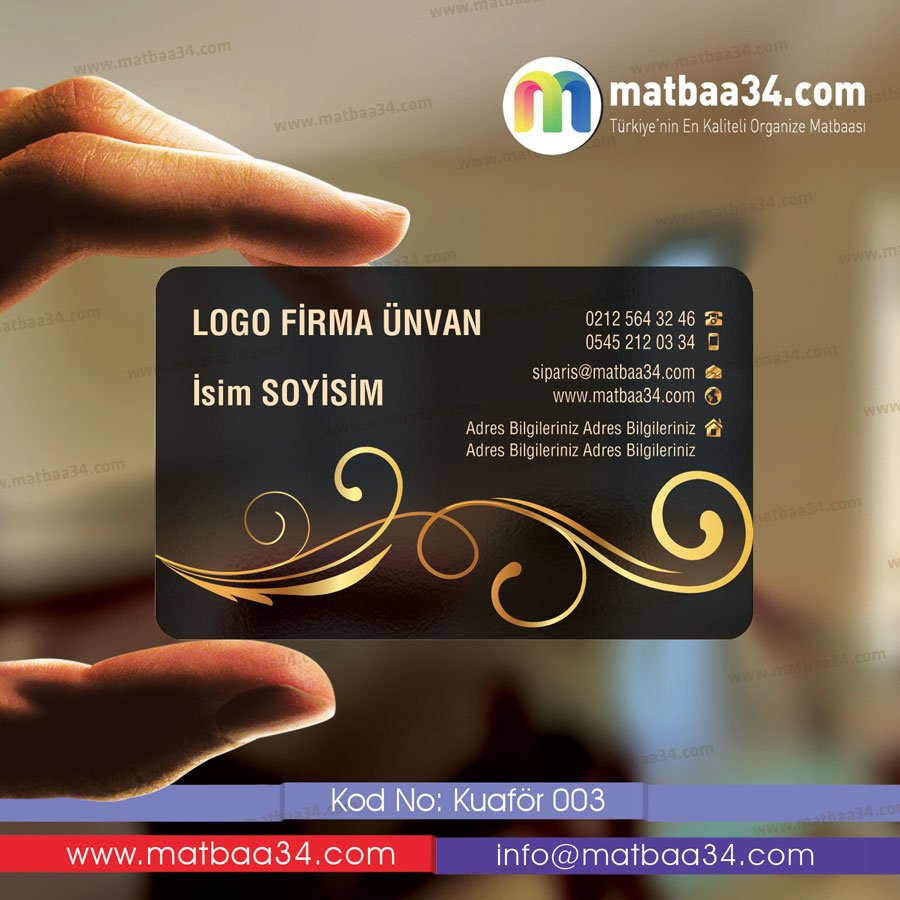 PVC materyalden imal edilen şeffaf kartvizit basımı, uzun ömürlü kullanım avantajı sağlar. Kırılmaz formda üretilen şeffaf tasarımlar, esnek bir yapıdadır. Bireysel veya kurumsal tasarım özellikleriyle, firmanızın bilgileri, logosu, iletişim- irtibat bilgileri ile dizayn edilmektedir.
