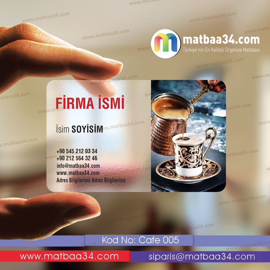 PVC materyalden imal edilen şeffaf kartvizit basımı, uzun ömürlü kullanım avantajı sağlar. Kırılmaz formda üretilen şeffaf tasarımlar, esnek bir yapıdadır. Bireysel veya kurumsal tasarım özellikleriyle, firmanızın bilgileri, logosu, iletişim- irtibat bilgileri ile dizayn edilmektedir.